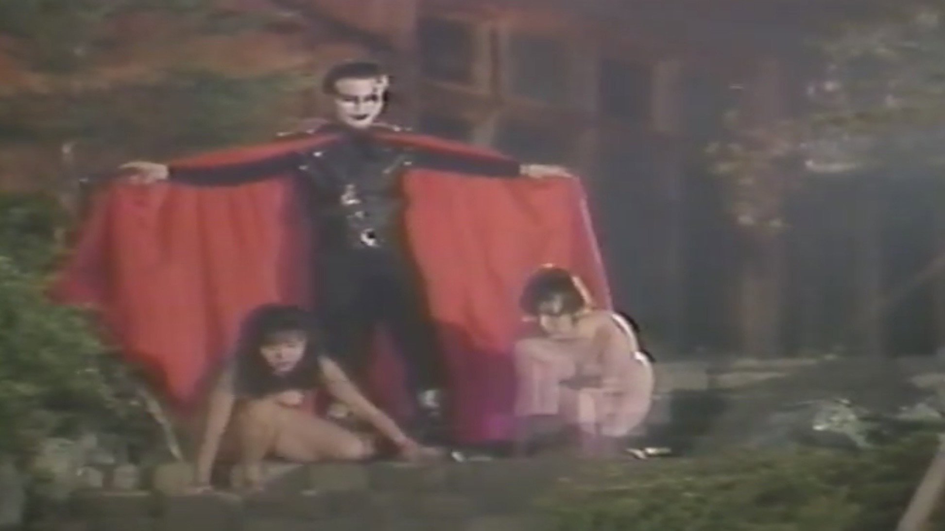 Vampire Sadism is an obscure Japanese torture porn film with a clown-faced vampire keeping naked slave girls inside cages and performing various bondage tortures on them while laughing hysterically; a woman is dunked in a waterfall, another one hanged from a helicopter.